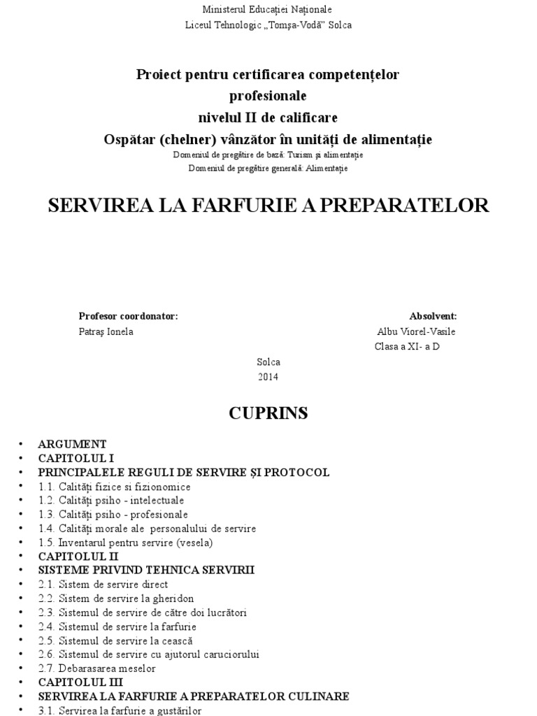 Domeniul de pregtire de baz: Turism i alimentaie