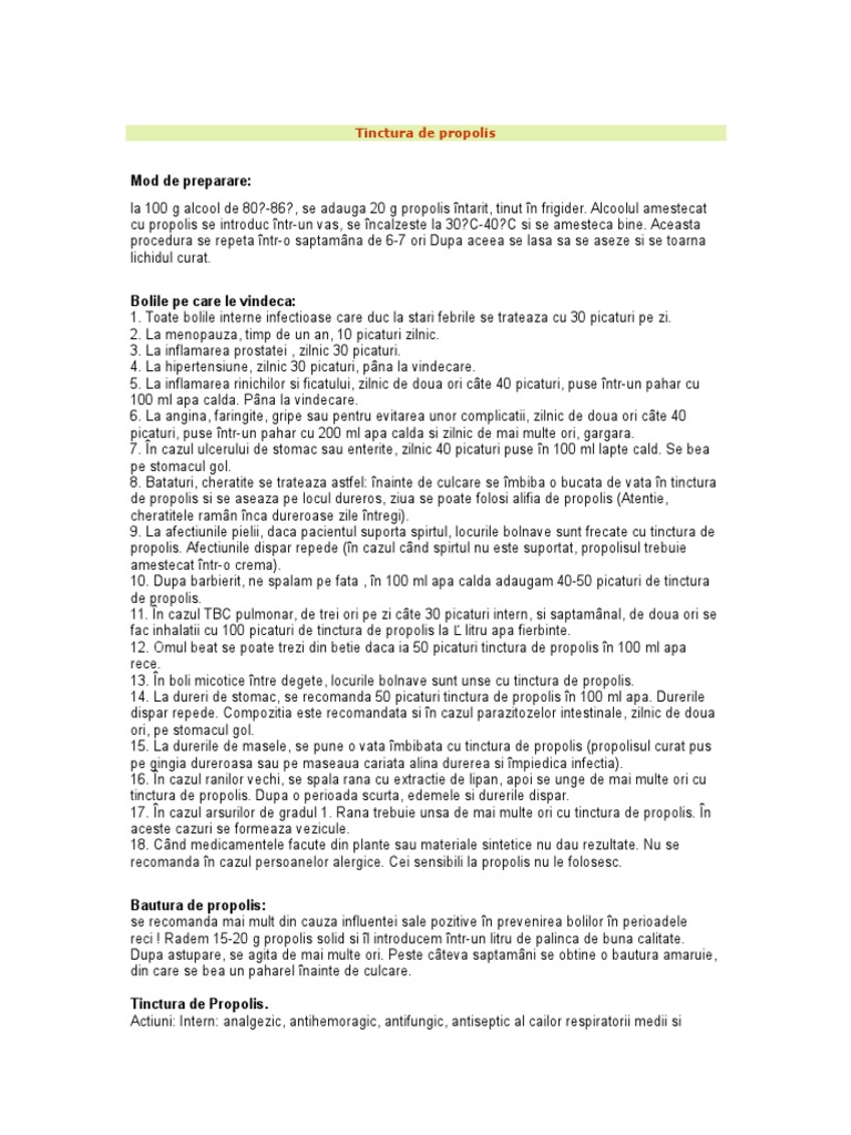 propolis. Afectiunile dispar repede (n cazul cnd spirtul nu este suportat, propolisul trebuie