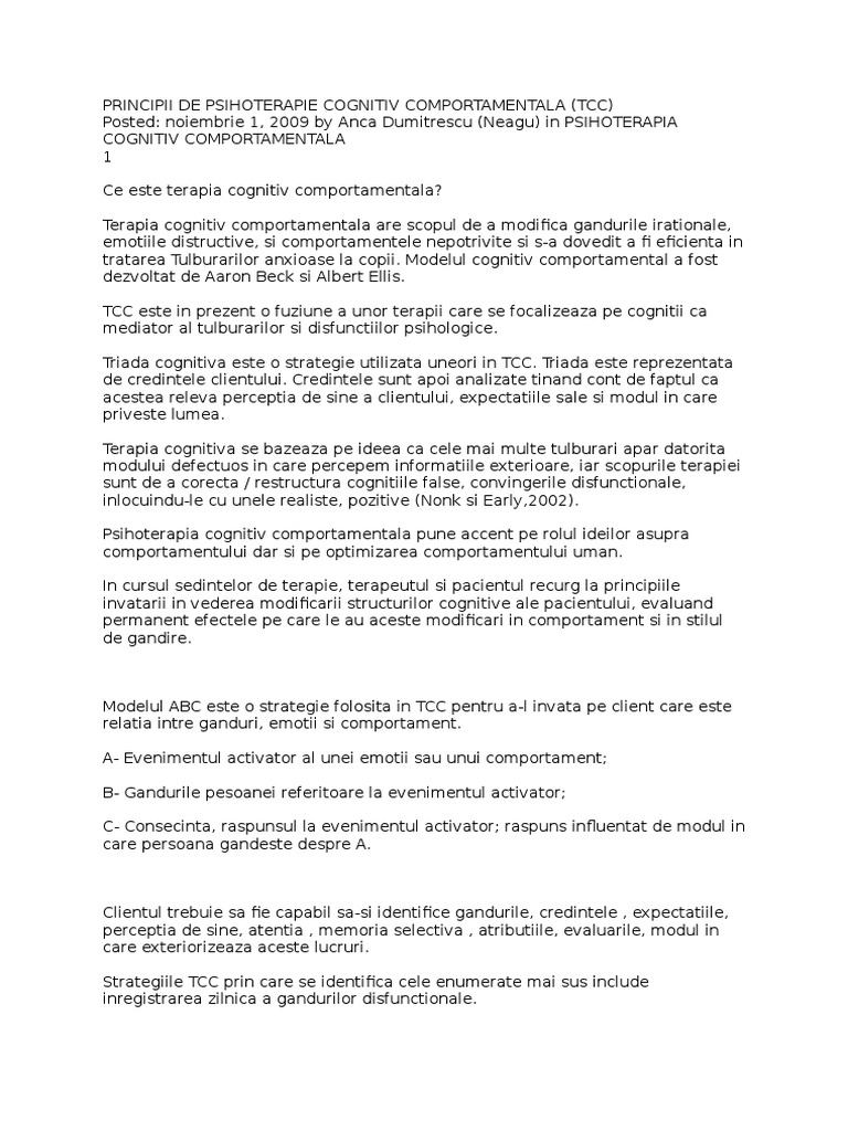 PRINCIPII DE PSIHOTERAPIE COGNITIV COMPORTAMENTALA (TCC)