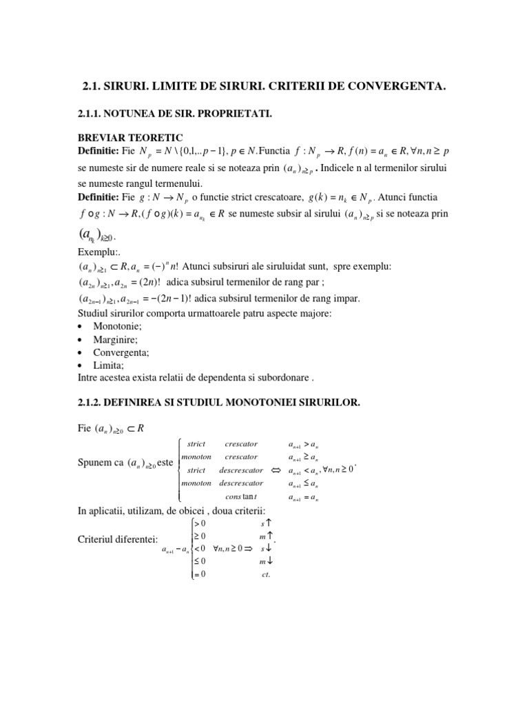 2.1.2. DEFINIREA SI STUDIUL MONOTONIEI SIRURILOR.