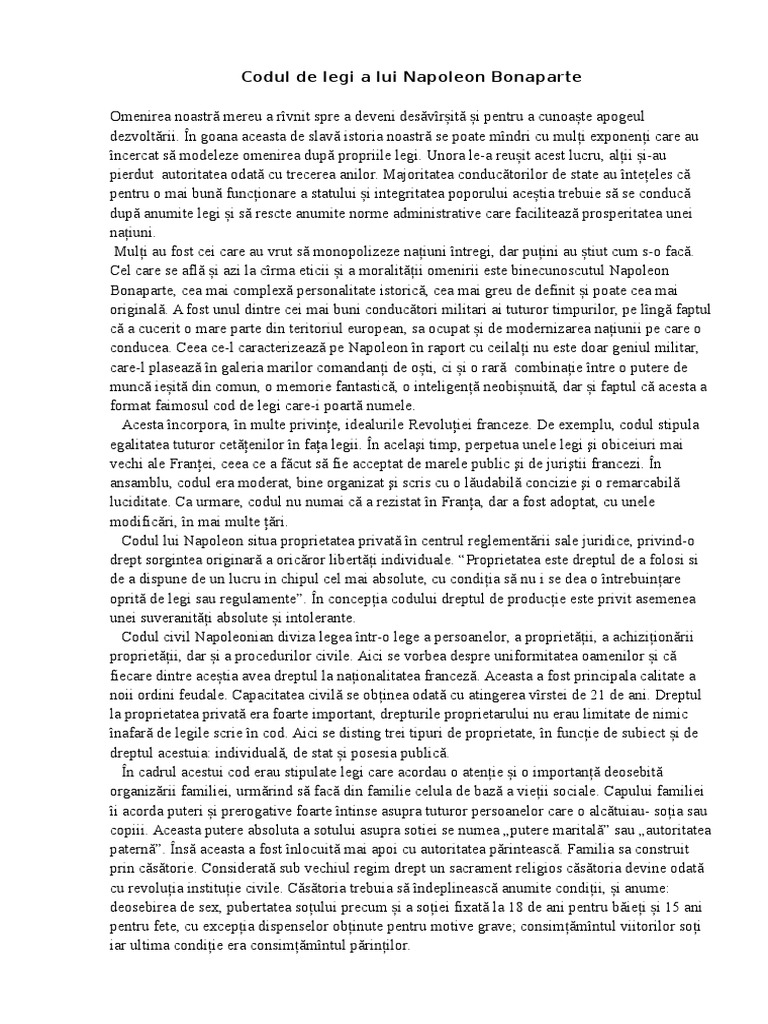 n concluzie a putea meniona faptul c chiar dac codul lui Napoleon a ajuns la o calificare