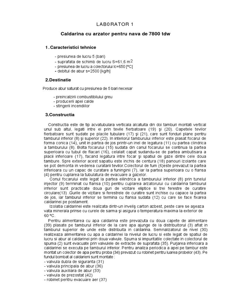 lucru si abur al caldarinei prin doua valvule. Spuma si impuritatile colectate in colectorul de