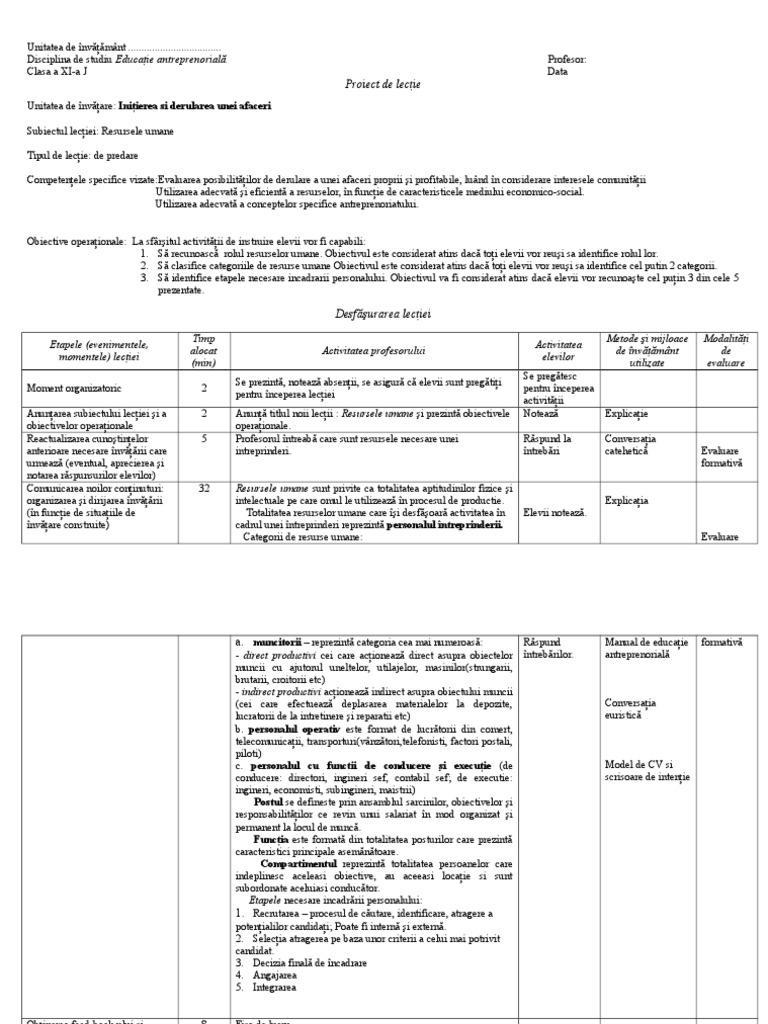 2. S clasifice categoriile de resurse umane Obiectivul este considerat atins dac toi elevii vor reui sa identifice cel putin 2 categorii.