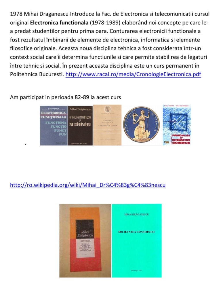 original Electronica functionala (1978-1989) elabornd noi concepte pe care lea predat studentilor pentru prima oara. Conturarea electronicii functionale a