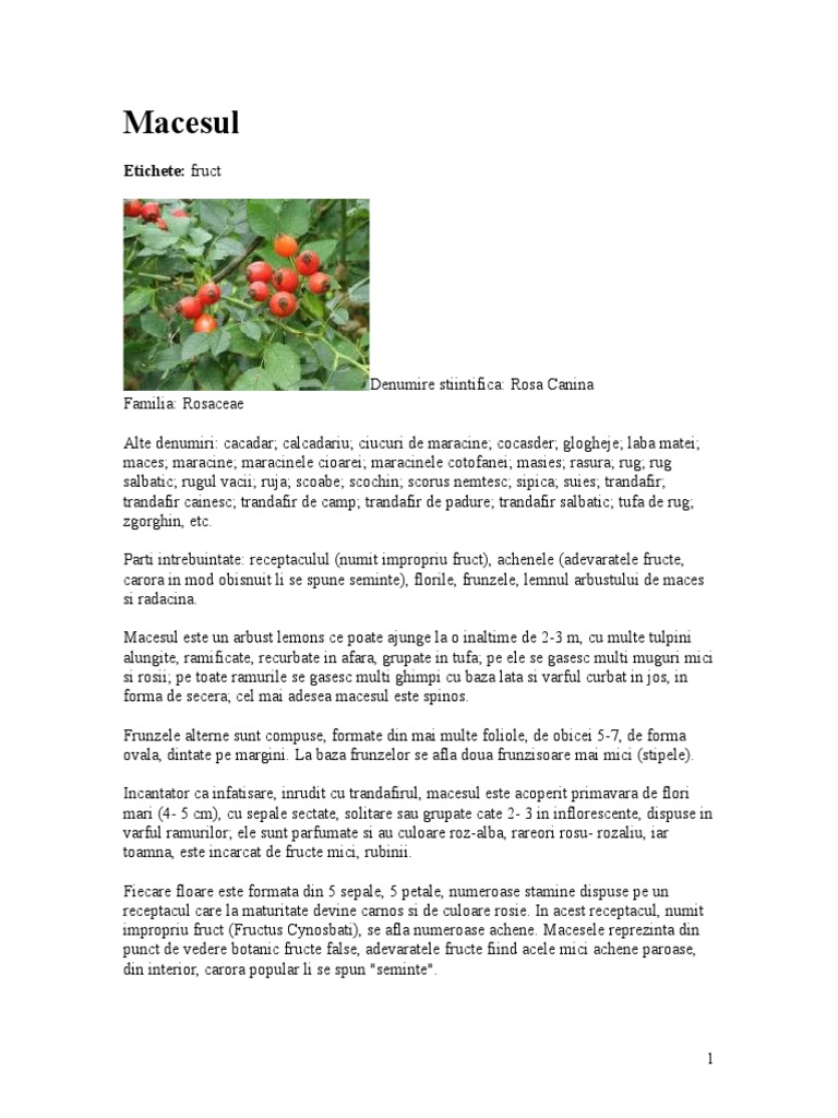 de maces. O tufa poate produce circa 300-400 g macese cu gust placut, dulce-acrisor,