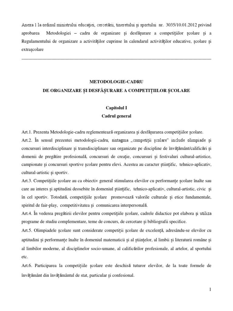 Art.1. Prezenta Metodologie-cadru reglementeaz organizarea i desfurarea competiiilor colare.