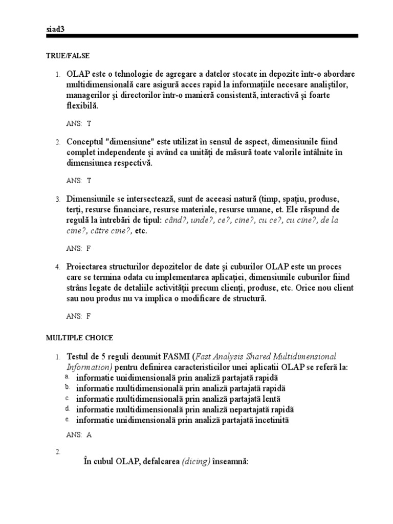OLAP este o tehnologie de agregare a datelor stocate in depozite ntr-o abordare