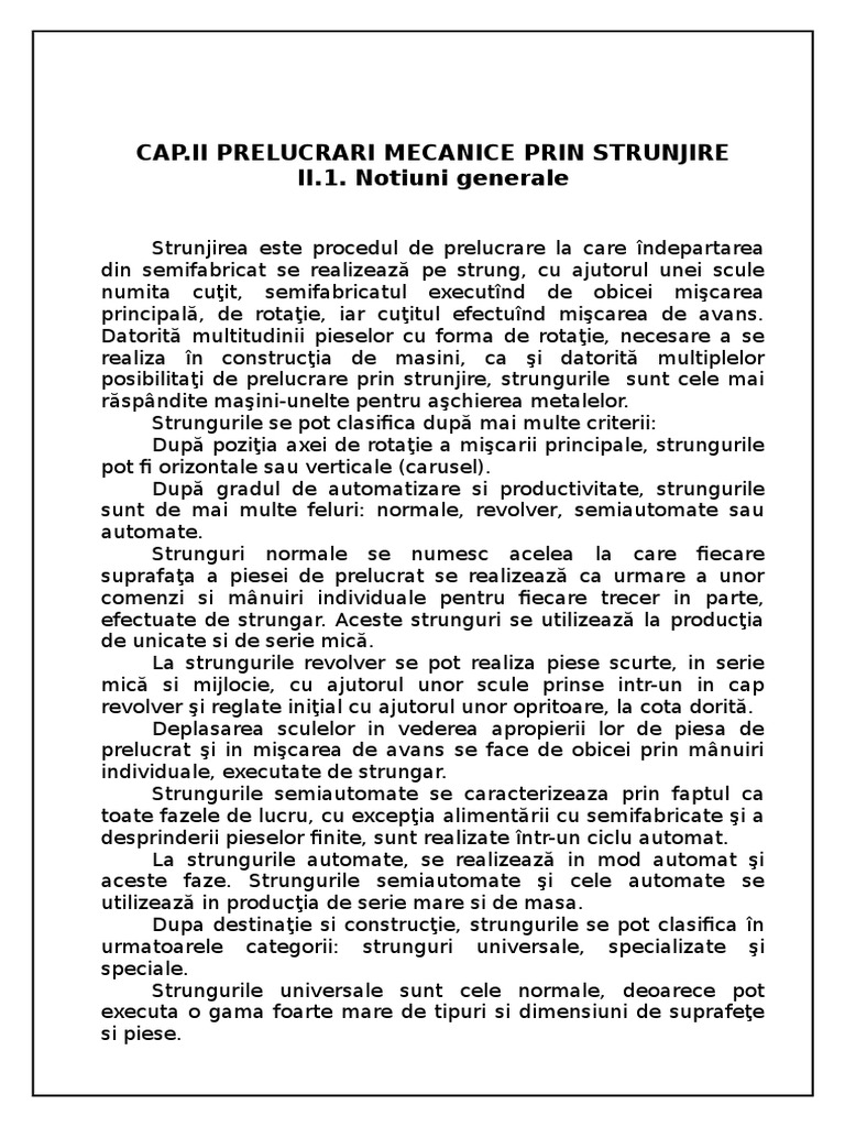 II PRELUCRARI MECANICE PRIN STRUNJIRE