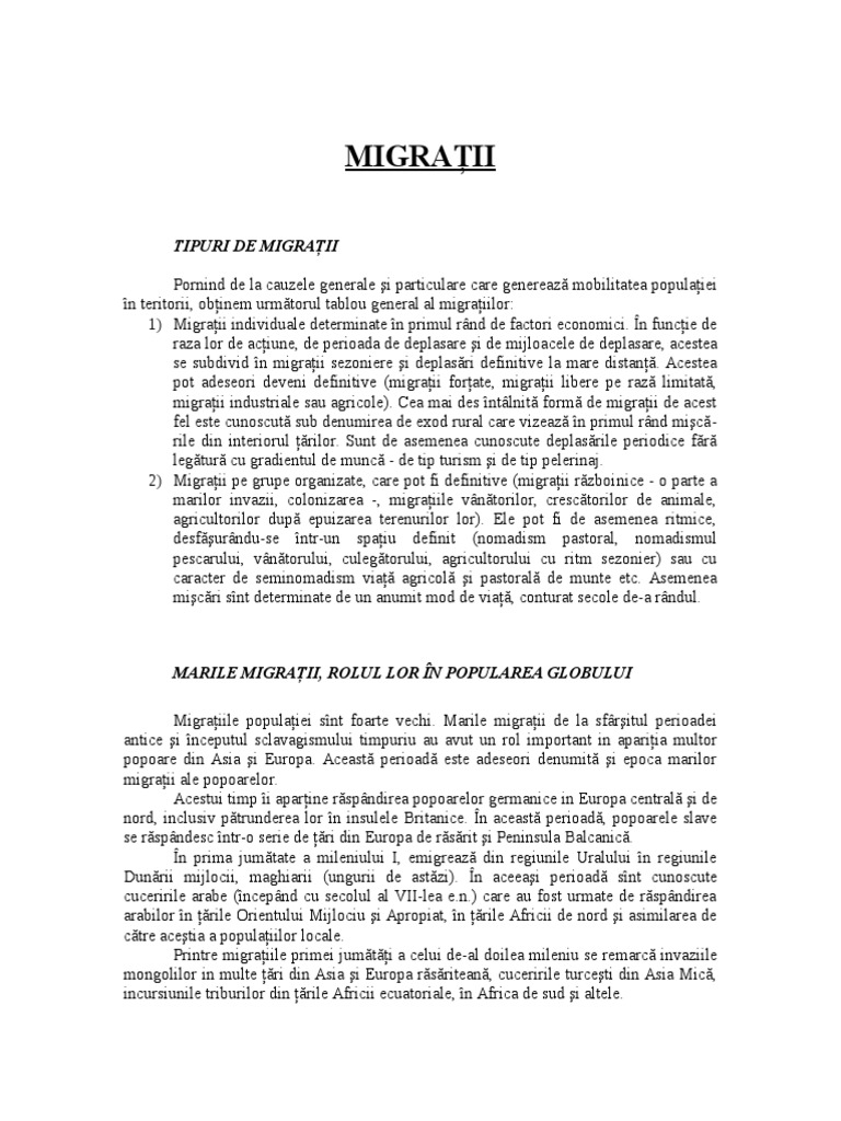 MARILE MIGRAII, ROLUL LOR N POPULAREA GLOBULUI