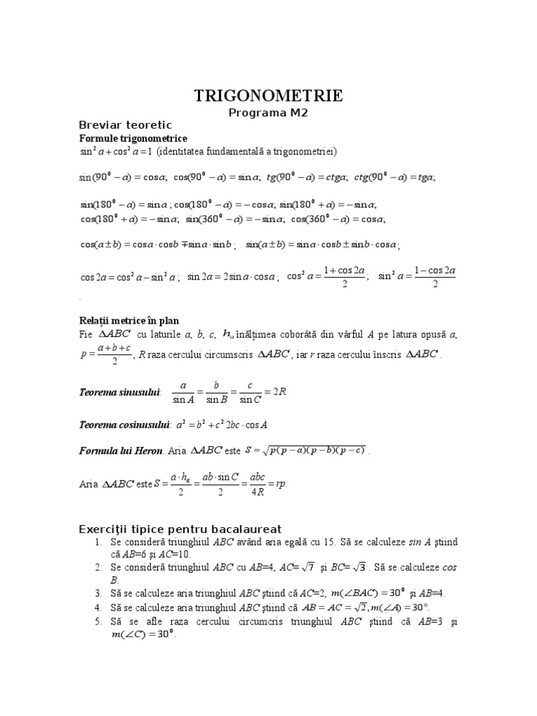4. S se calculeze aria triunghiul ABC tiind c AB AC 2 , m(A) 30 0.