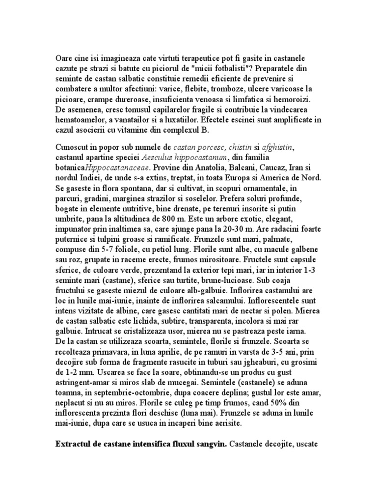 De la castan se utilizeaza scoarta, semintele, florile si frunzele. Scoarta se