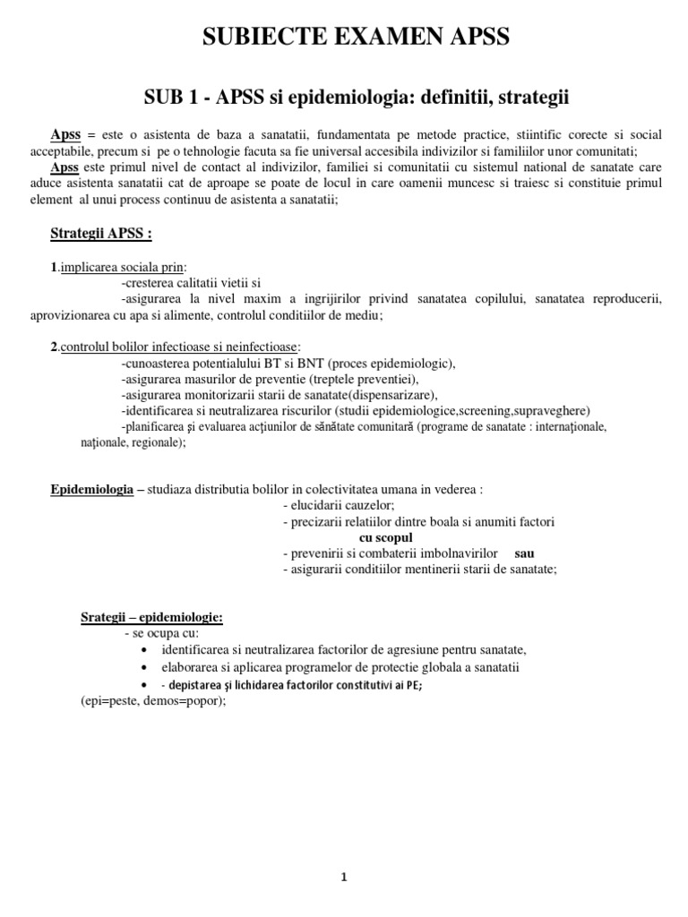 SUB 1 - APSS si epidemiologia: definitii, strategii