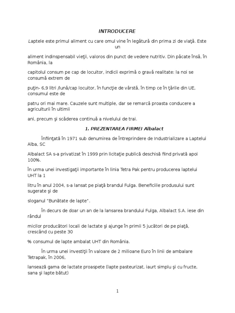 Albalact SA s-a privatizat n 1999 prin licitaie public deschis fiind privat apoi