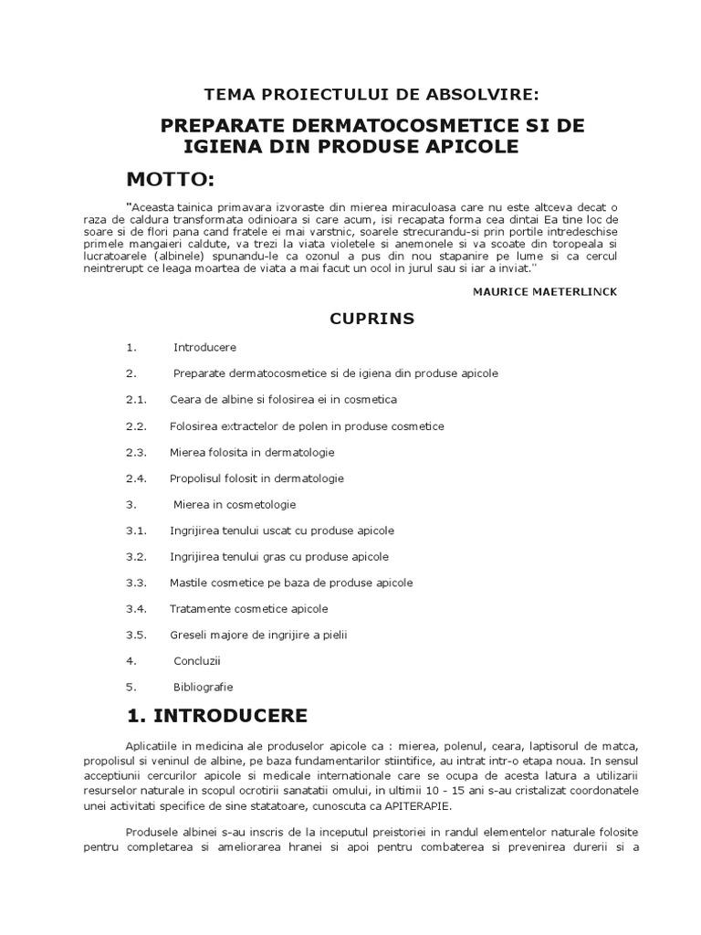 Preparate dermatocosmetice si de igiena din produse apicole