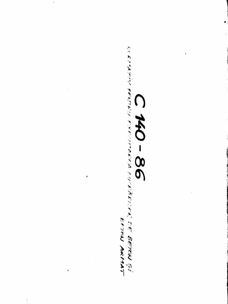 C 140 - 86 UL RATIY BRAPRY ReCITARTA 1 URARTCR PE BETON 81 ETON ARMATREA TUCRA ILO SON ARMA IY € 1ay-s6 1 SETAR: IN COD 5 fA COWSTRUCTHLOR-ANC. nc Director adj. stiinditic di. ing. Romulus Cons Sef Ishorator: ing. Stefan Eneseu Pesponsabil knevare : ing. Stefan Eneseu Responsohi din pa: NCCP: ing. Aurelisn Radulescu RMS PENURU LOnCLTAREA 7 LCRAPILO DIN BETON SI BETON ARMAt 2), prdhini, tuneluris beton orecempri ©, torerctare us ctare, betoane pe be a. ete ‘i © aplie® in mae u specifice cazurilor n " r e. ins; the precentulu! nesativ este obligatorie pen sat 6 le cove profecteaza si cencers AUCTIC $1 ECONOS THOR — In¢Pos ease A geome BRN te EN Ja. La eseeuts: luerivilor de beton Vor wea in vedery seglementarile menti 15. In func: visticily naliza efeetuaté 1 se Va adopta Se va preciza dupa caz de impermeabilitate : aa nt minim de ciment ; maxima a raportului 4 C. sul prezentului ucmstiv prin constructii c& se impun conditii od covespunzator class projecie eltborat= remtului normativ prin .marea*, pent fe vane Sa lor ¢ eS coset ps eschiderile adop- 2 Ci Betoune Ae classé Be 35 Se execurd 2 tehns Ril deo; ave deosebite ; FMA su care necesita 2 de catre Spcciels. proicetul_va_fi-com—- det dé satcint care va cures ea aspectelar eu ca deosebit ale lucrarii ; sille tehnice pent Stele componente ale se Yor utiliza ; us paramettii de sein 0 elasd interes 2-85 $i a fast & se gut. echiva ea saterial: nice impuse beto~ acestuia ; file teanciogice dle beror ve: orinea si ritmul obligatorii in c:cul uror conditii cli te saul intreriperitor ness-cramate ete. ; ot de cofraj §! sustineri (c2:8 este cazul) ; = rosturior’ de lucru s: modul de tratare a 17. Pentew asi IECTANTUL va Bradul de agresiy 4 durabilitetil construction, veginul de espune turele ¢ jresive asi anexa 13; Proaspal depozitare, mes — anexa VIS, tre y Pieate? oralului Mavsi Nes ~ ore rele ; : < Hon, inchsiv pre- cap. F). os - _ ee = co ~ye 1.10. Se recomsnda colaborarea la proieczarea $} execu se exccuti in perioade de 4 tarea construcsiilor speciale, a laboratoarelor 2 epecialitate din : revederile Normativulu’, i q institutele de cerce:zre sau a catedrclor de sp--ielitate din ine 7 - - aoa _ 4 — , yeage perioada de executare a lucrarilor se a4 indarea le_gencrele si normele specifice privind & probleme pri solicitérilor, verificarea (constructii-mentaj), precum si normele a portarii prin te sau la scar? na sala, outa neoecTIaEN a i bo stabilirea mésuen's Ge ate ee ee a a wo ; elenentelor si detaliiie de exectie $1 €2 control e «i mun Tecestie: patrunderit beto- d tai hu Va face US cate consecctor prin ise pet 3.21), a 3 fehnologice elabure:s tinthd seama de inmpuse prin Sear gh tile de dctare @ csecutic), g girs. trebuie si cuprinda . aq ca CSleciuit? fis : ccpititoave (oe imp 2. COPRAJELE SI SUSTINERLE LOR . rezervels geestors, materiale Deze generate cons Si ritmul de execuy cgice uecesare asigura: punctula tehnuico-organizatorice su: al Unor cond!=: climatice extreme ; i webuie sa fie astfel aled- indeplineascé urmatesrele condizii: — igure obtinerea formel, dimensiunilor si gradului e prevazute In proiect impuse de te F reeezé 5 fi exectitate, respect formatite ¢2 Incr (numarul dec! munci- Se tori’schimb) fie ctanse astfel ineit s8 ru penmita pierderea lap- : som supravegher farienes Z| epee ©) 84 fie stabile si rezistente, sub actiunea incdire i ‘ “ care 722 in procesul de execute ‘ : Ved esigure ordinea de te L side NTS. 4 esigure : i demontare sta mentele d2 beton cofrate sat compon ‘ajelcr si sustinerilor ; A permit le decofvare o pretuare treptata a elementele cary se decofreezé, Cofrajele se pot cenfectiena din: lemn sa s de caiet de sarcini a procedeul operetiot in documentatia ce be=2 pentra ela- cu caracter ¢ caue’, ecesten vor borarea fisei te=n Figole tehnai neared se beneficia ; rului_ peniru + solicita si : acordul proi 8 Personiin:! exccutia Iu- i emrii va insiry de lnciu esupra prevederiior -isei teho - ye Rologice, inainte € ea luerarii. - — i ® Sea Cf: tehnologia de mez frajeicr Se Vor claoiss nologic de exec 2A Dinepunics secizai precun tuire @ co- vectului teh eventualeior ferestre da curitire sau belonare ; ‘ui de control al calitzcii pe fazele de execu necesare (echil 5 ens de cofrare stale $1 forya de manca) ; sustineri, ie. ‘vedere al Conceptiei es 2 50 Ceo de munca Ge inceperea operetie: de montare a cofraj 2 Si poeta suprafejele e2 beton care vor vent + betore" ¢o umenet @ se tone §, se Va veritiea $i Ive enti us Lge 22" continu ae rost ~ coftajo fi pare a Beton = coiraje den. = safectionate si montate fe @e obicel lt 0 sing bile stationare, reali heul de tu mobile, care se ¢ era tuaéri! betonuluy 25. Cofrapie, 2 mensiona tinind 26 Py acrstea se ung cu as: kontecr GW bate: fie ries pleele ee te de precizariie dat. aderenta intre de decatrave tied cofrejetor 5 si sustinerea pa “flearea si coveeisrex pozit's! panourils: ores, lugares $i sjrilin'y a cotrajelor ete Vin 1 inte de bs Ge aco: nae Leils Tn caaette in cave ¢ mere a cotre- ul i ul, sa pa es ateierenvestenverl caren sobeitariton 4 Ueowul cL ful, sso aolich uses eee DY pe tein Sa igi Span alll i Gondlifiiie cj 3 Unis ade gradul de compacte:® $f posibilitiqile de in aa a iil ec lor, sai expus inghe- it SA se evine producesea ts le in care terenul es: wi va fece | sustinatilor se va fare astfel incit sa se evite 2) (imezive, mundane tora in funciie & fe de temperatura 2) depesitaren cotvas 2 MEKrisle pe stives ul si receptia Juerdvilor de eofraje 2, Ts vedevea asigurarii unei executii corecte a colrae sor efetua verificdri etapizare astfel controlindu-se lescarile pregétitosre $i subunsamblurile de ccivaje si sustinert : rat exec 2 pocitionarea in ea si mod} entelor j uk, recoptia cof S) consen*"area eonstatari! Ai Ge ‘procese verbale wt verificarea calitay ma de prevedsrile ce Prog rea Incrés Je cenit baa anatiai! protectulul sia cond:ites Ge exeeutie, consiry Ws stabili tipul de cofz