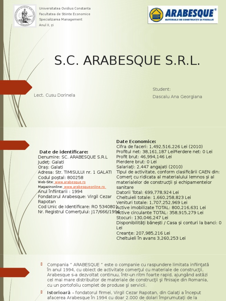 Compania ARABESQUE este o companie cu raspundere limitata infiinat