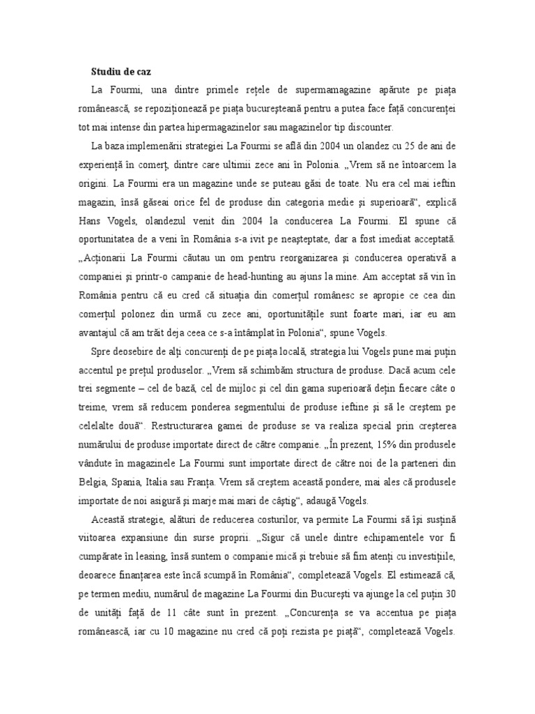 intrarea pe pia a unor reele precum Kaufland, Plus sau Penny Market, pe care le cunosc