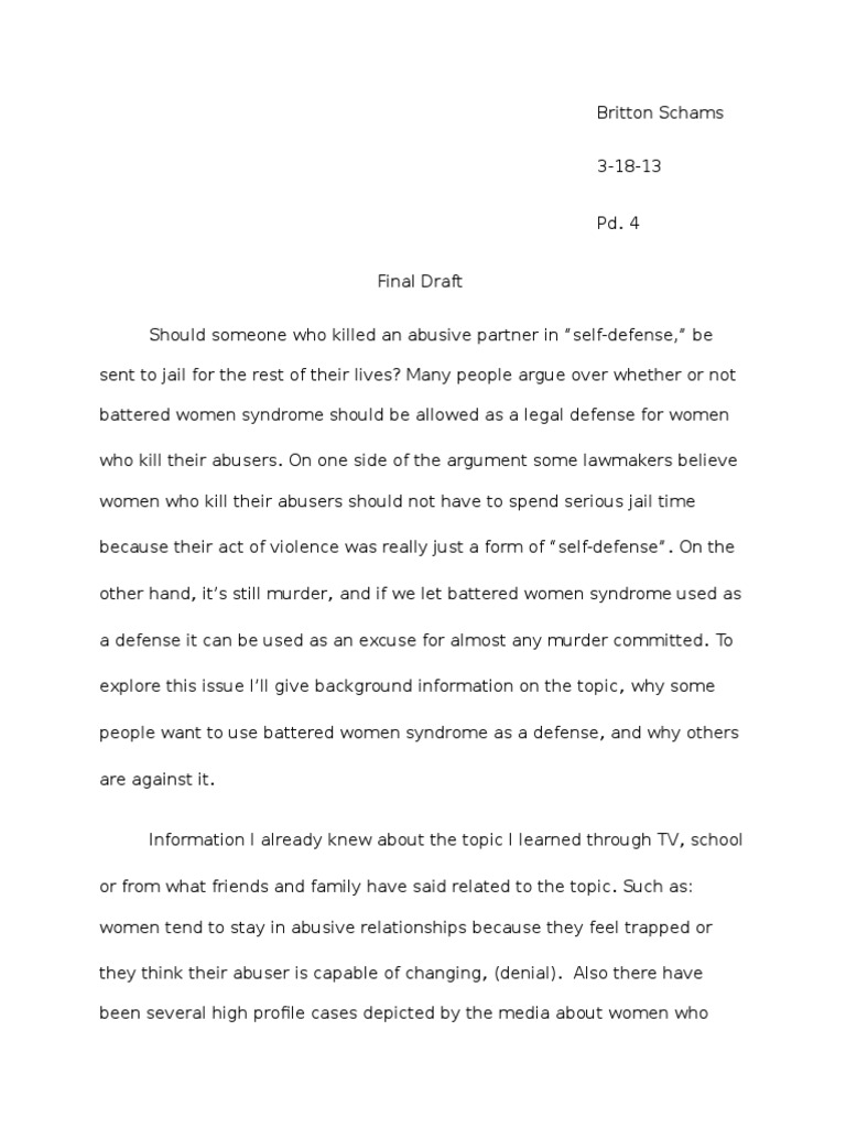 battered women syndrome should be allowed as a legal defense for women