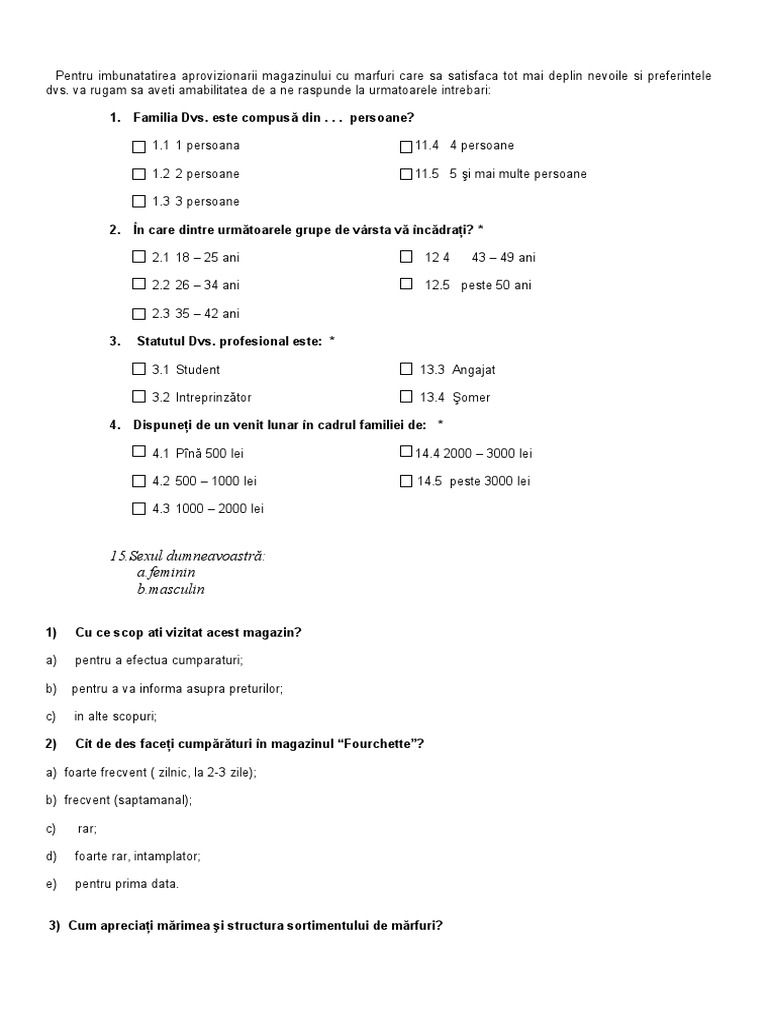 dvs. va rugam sa aveti amabilitatea de a ne raspunde la urmatoarele intrebari: