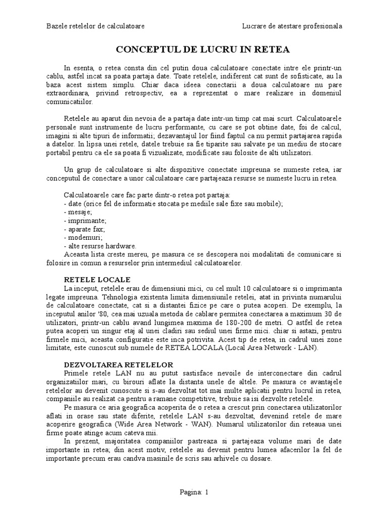 cateva informatii de baza legate de retele de calculatoare deoarece aceste retele se intalnesc in