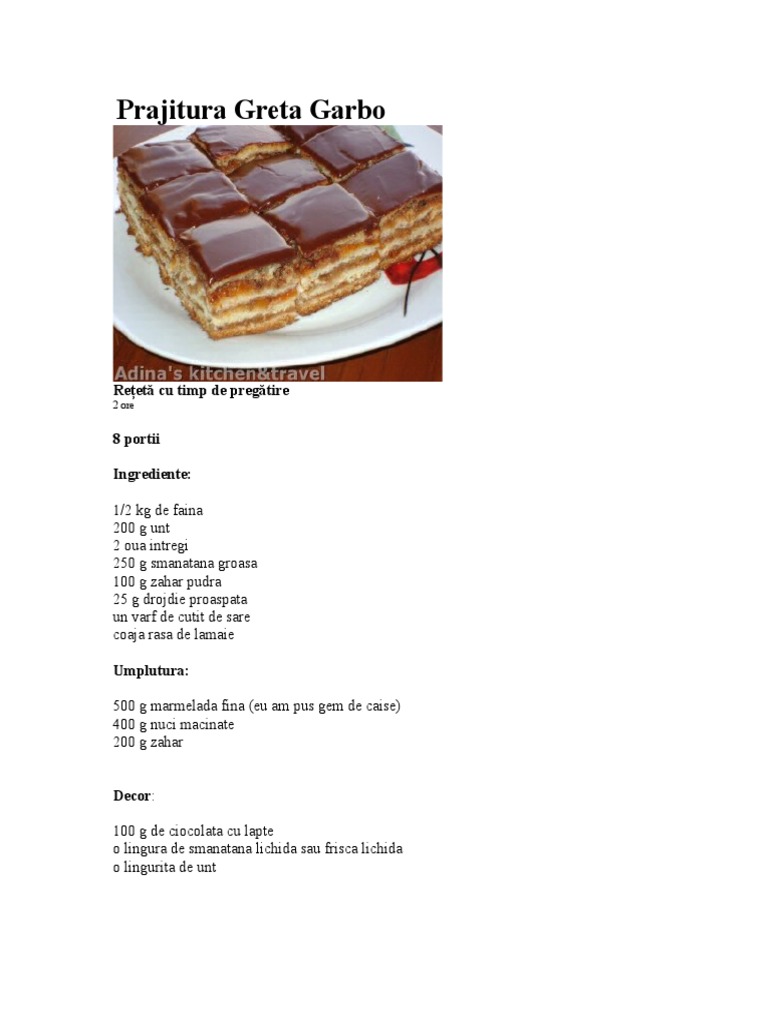 fin. Se introduce n cuptorul prenclzit i se coace circa 45-50 de minute.