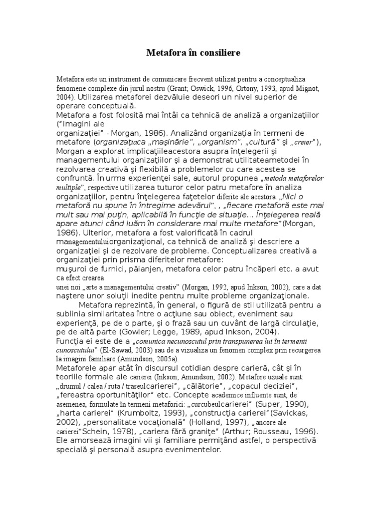 2004). Utilizarea metaforei dezvluie deseori un nivel superior de
