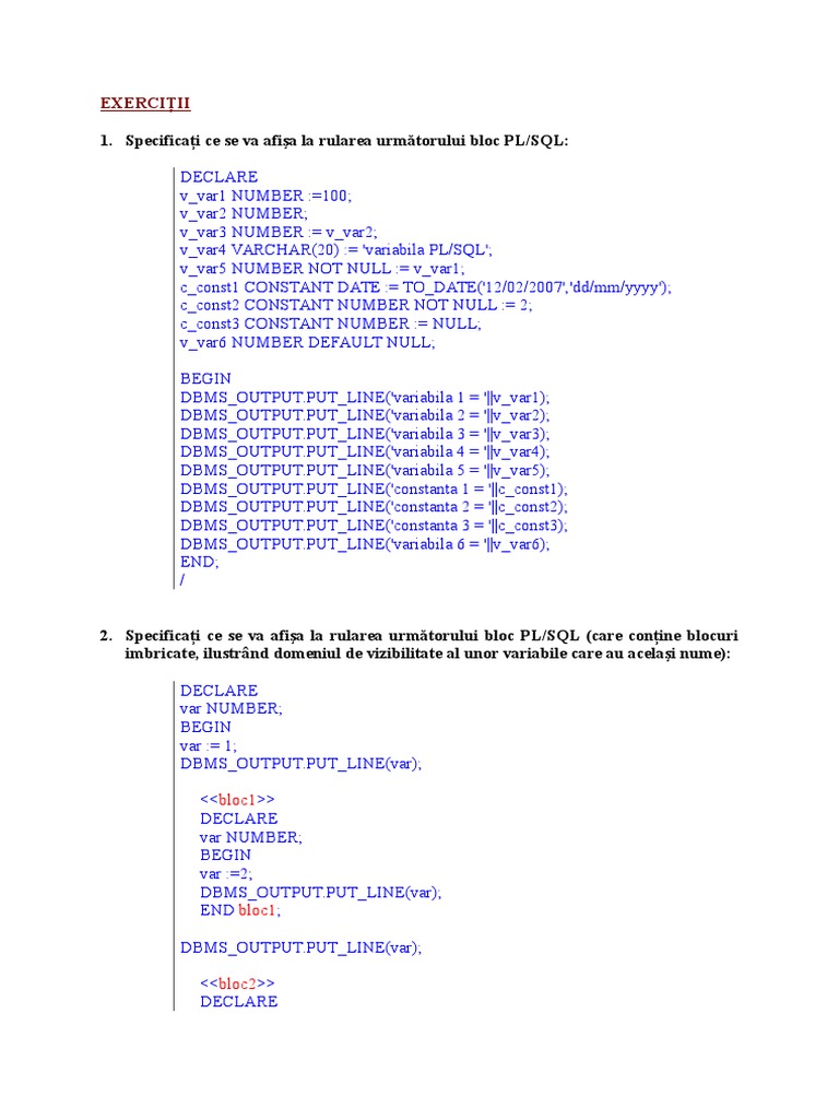 2. Specificai ce se va afia la rularea urmtorului bloc PL/SQL (care conine blocuri