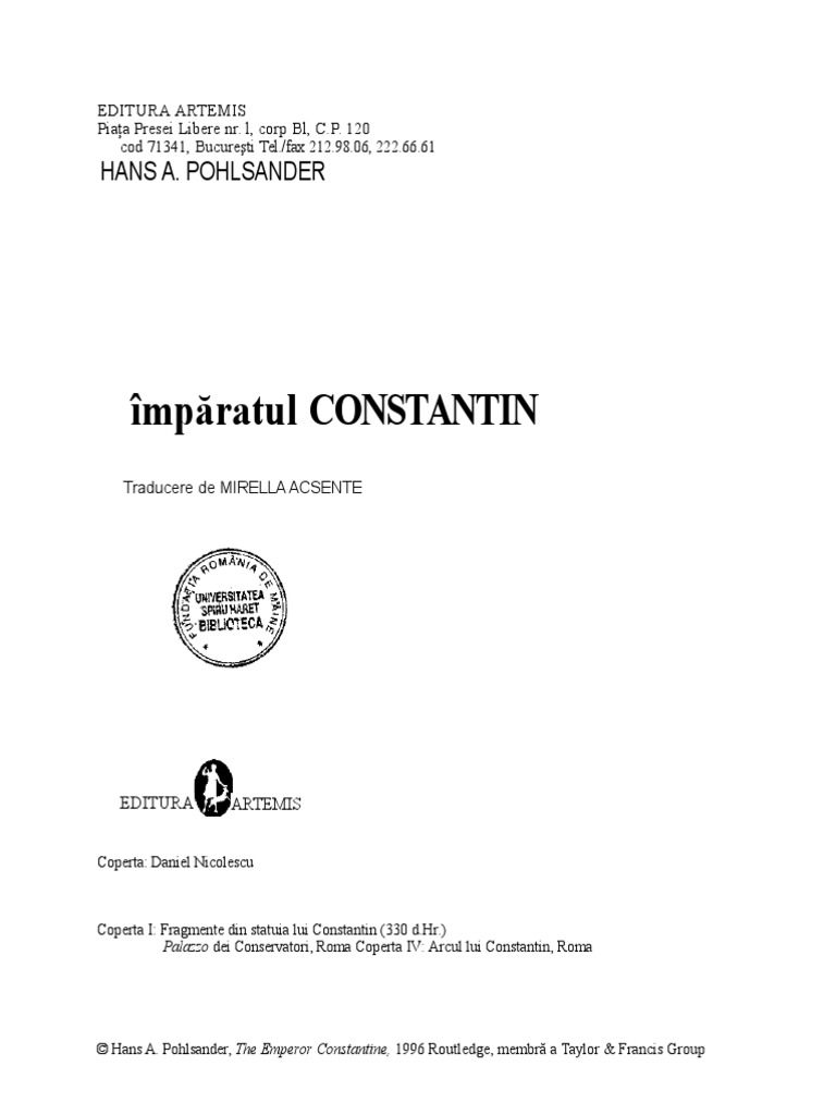 Hans A. Pohlsander, The Emperor Constantine, 1996 Routledge, membr a Taylor & Francis Group