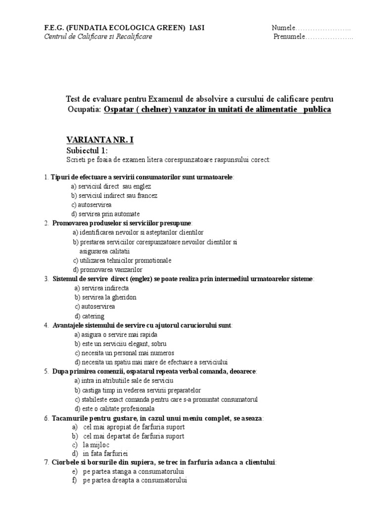 Test de evaluare pentru Examenul de absolvire a cursului de calificare pentru