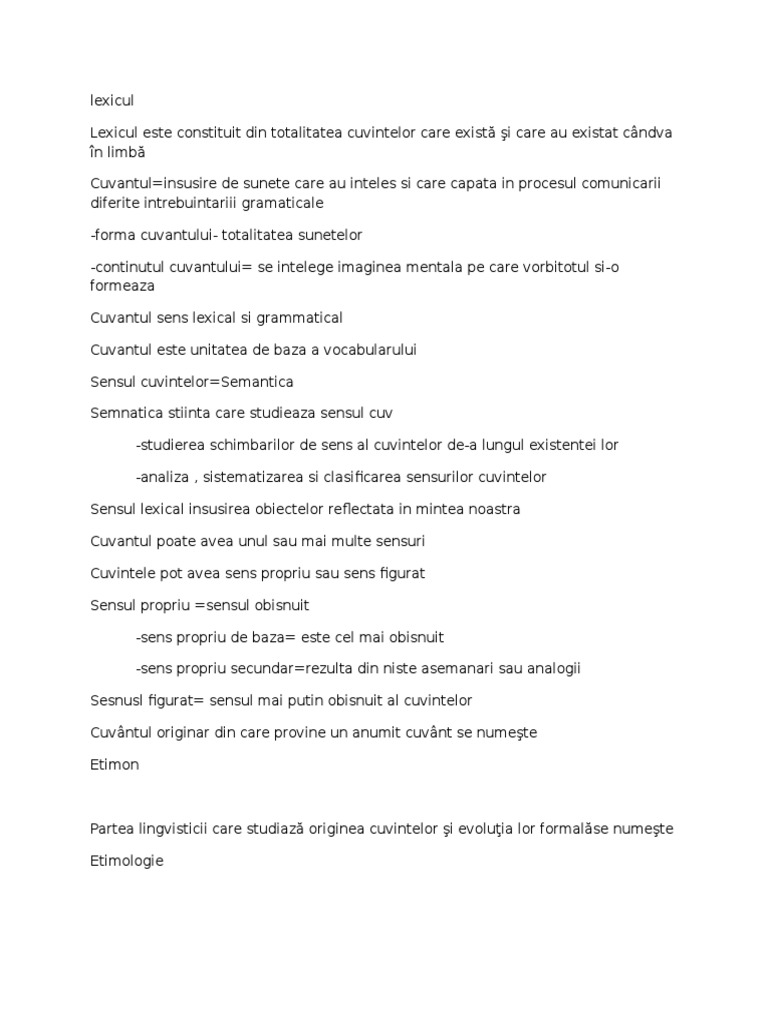 Lexicul este constituit din totalitatea cuvintelor care exist i care au existat cndva