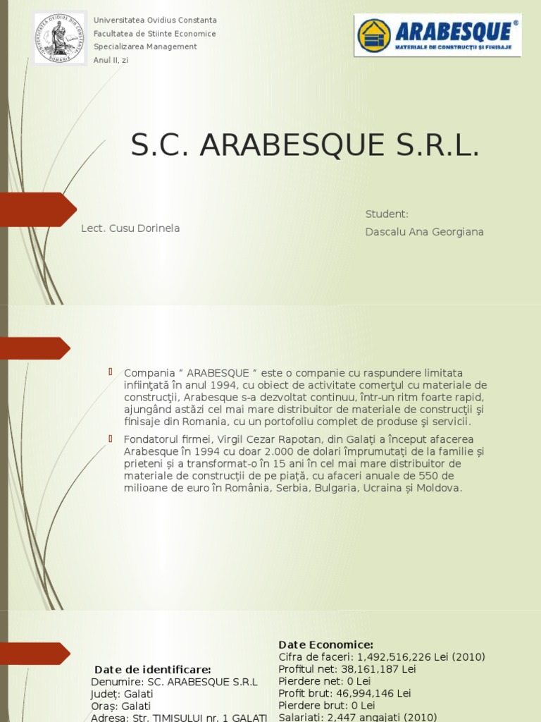 Obiectivul principal de activitate al societatii ARABESQUE il