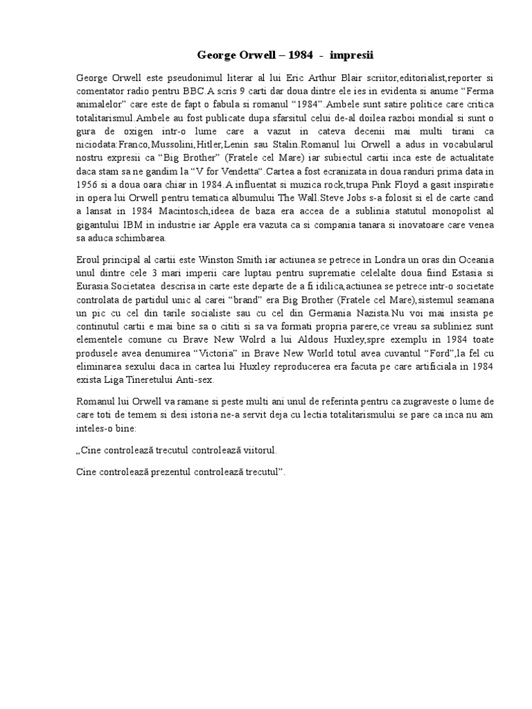 in opera lui Orwell pentru tematica albumului The [Link] Jobs s-a folosit si el de carte cand
