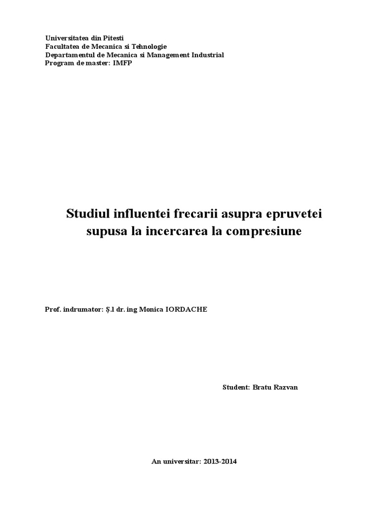 - In primul capitol Studiul influentei frecarii asupra epruvetei supusa la