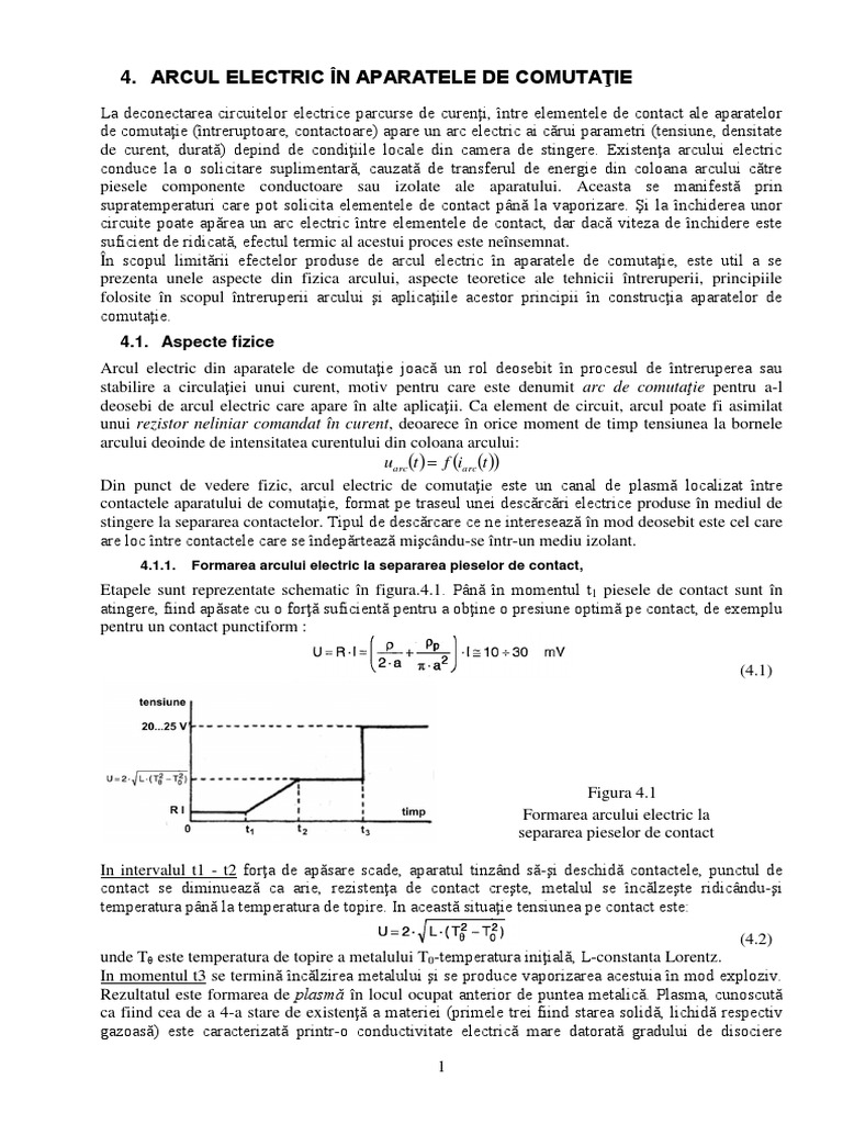 de trecere. In fig.4.3 se prezint arcul electric ntr-o form puternic idealizat i componentele