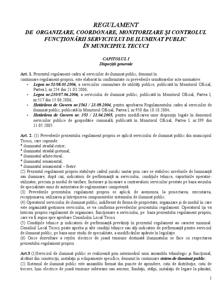 Anunt Regulament Iluminat Public