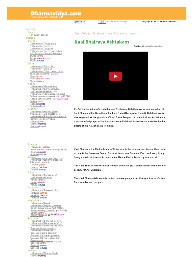 SriAdiSankaracharya'sKalabhairavaAshtakam.Kalabhairavaisanincarnationof