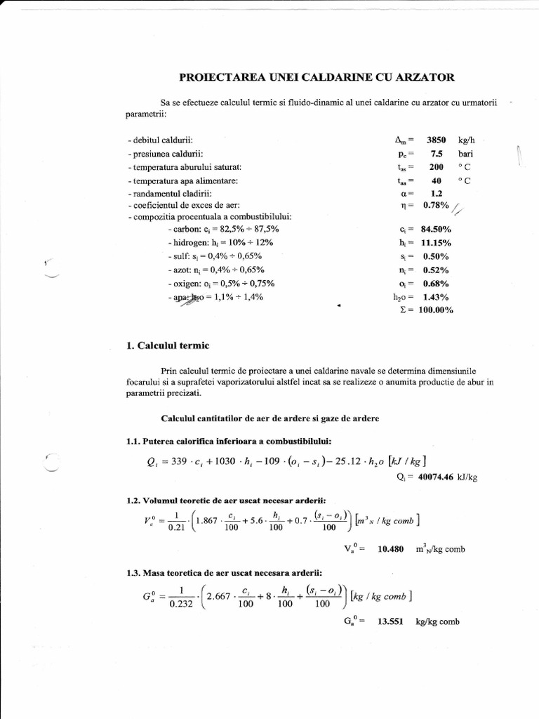 Prin calculul termic de proiectare a unei caldarine navale se determina dimensiunile