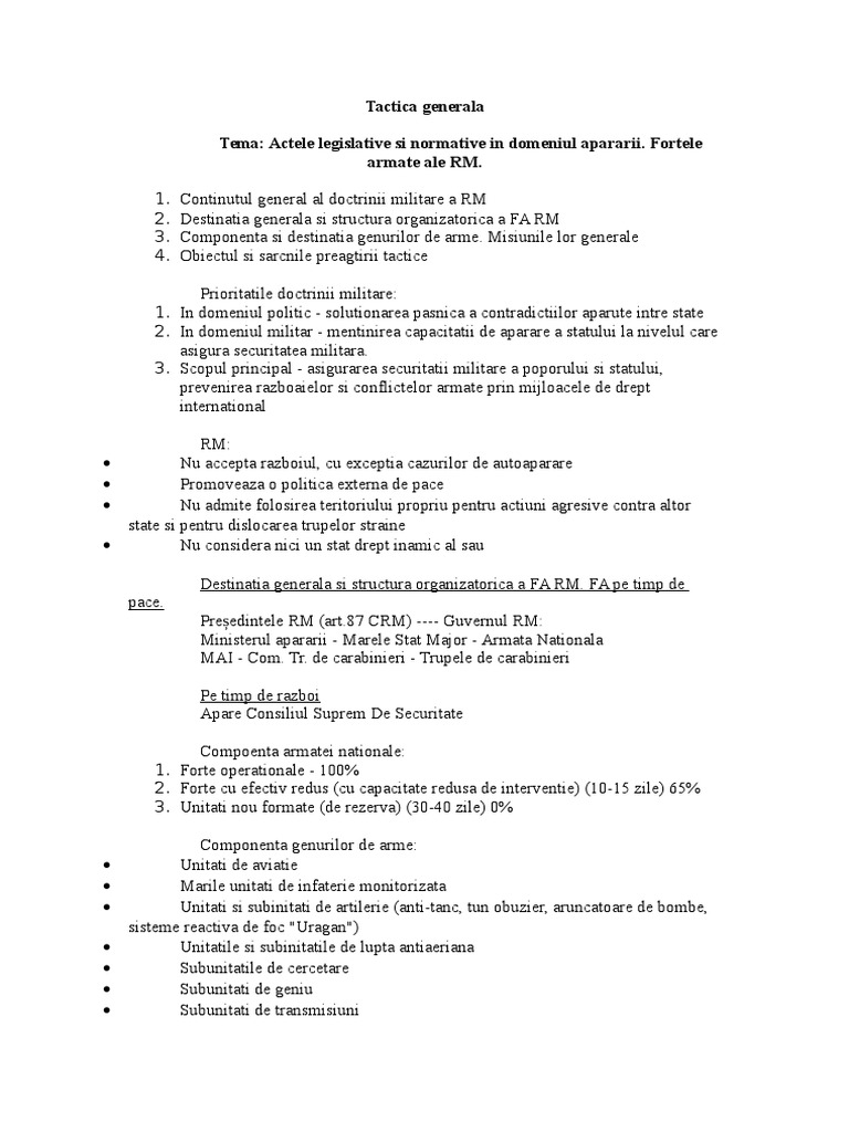 Tema: Actele legislative si normative in domeniul apararii. Fortele