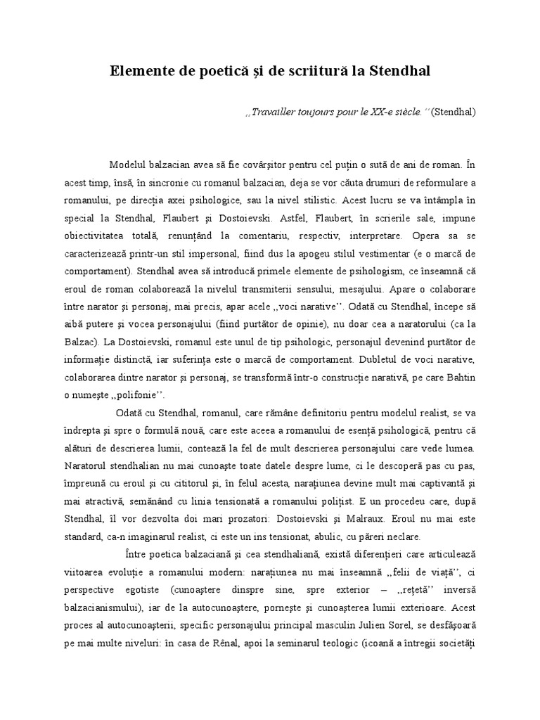 la: a fi citit n 1935.2 Dei contemporan cu Balzac, Stendhal e receptat ca i cum ar fi fcut