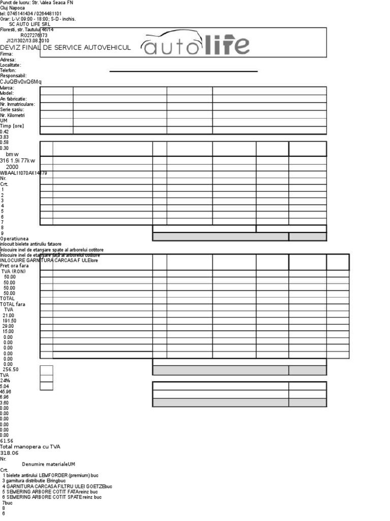 DEVIZ FINAL DE SERVICE AUTOVEHICUL