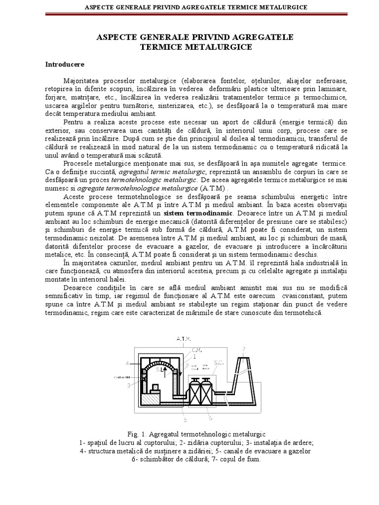 Ca o definiie succint, agregatul termic metalurgic, reprezint un ansamblu de corpuri n care se