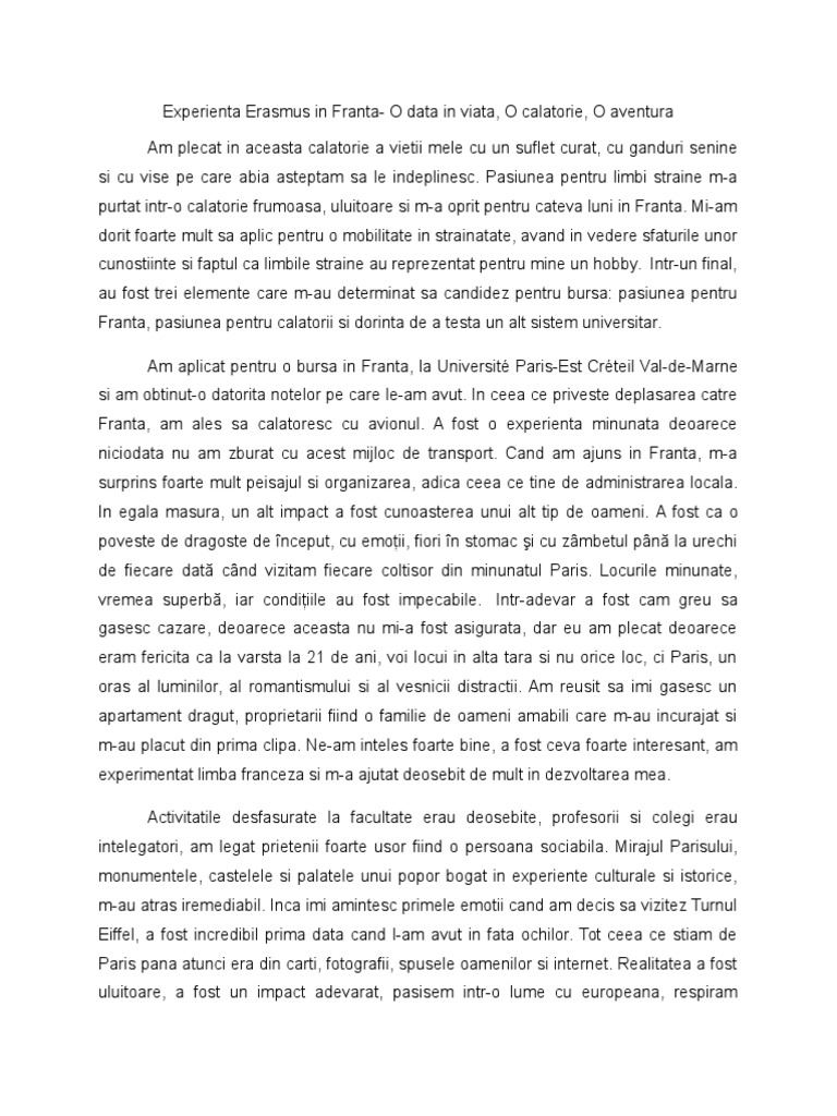 Experienta Erasmus in Franta- O data in viata, O calatorie, O aventura