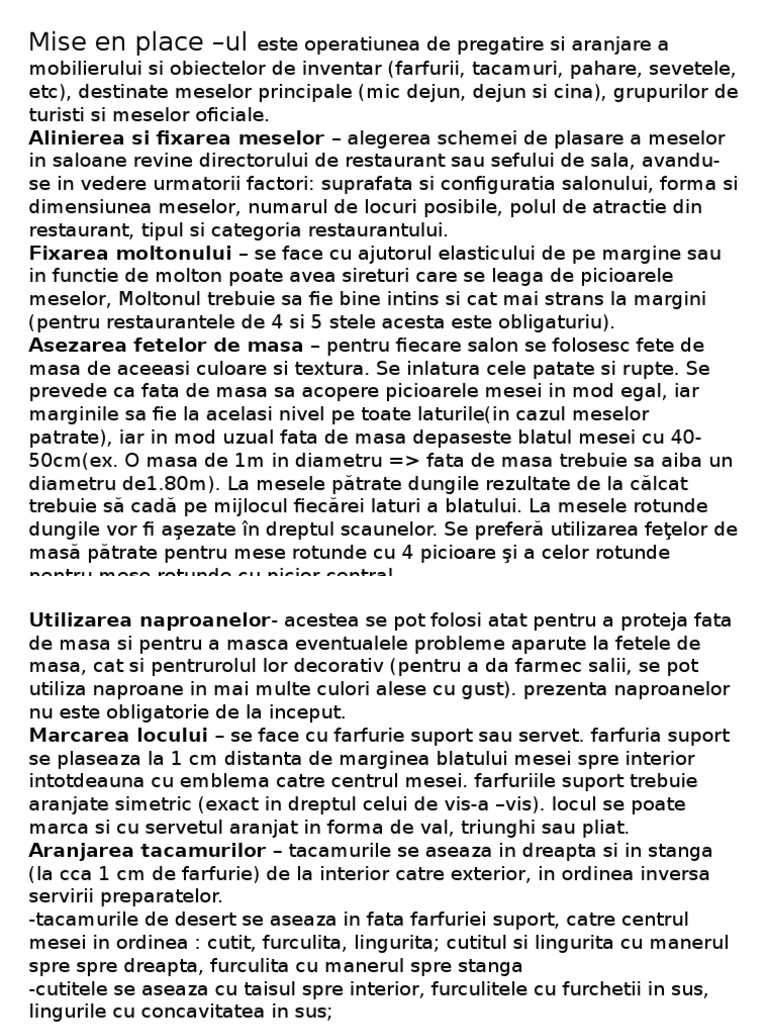 etc), destinate meselor principale (mic dejun,dejun si cina), grupurilor de