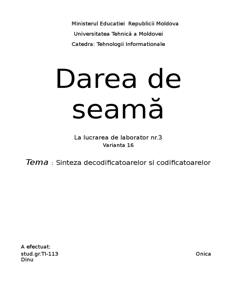 Tema : Sinteza decodificatoarelor si codificatoarelor