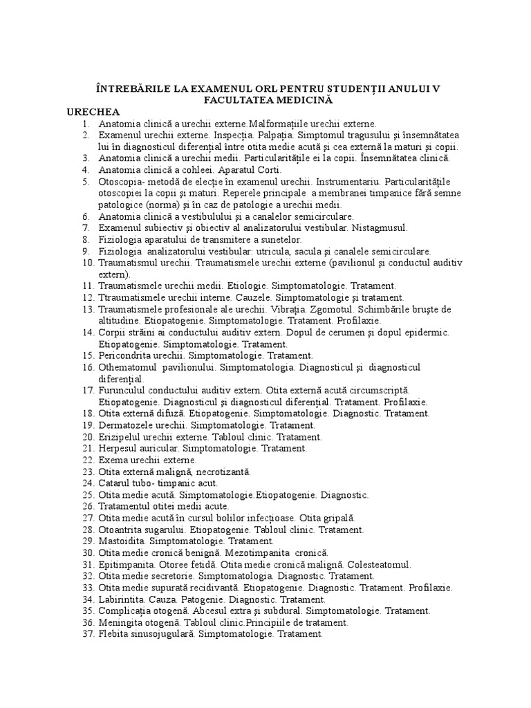 NTREBRILE LA EXAMENUL ORL PENTRU STUDENII ANULUI V
