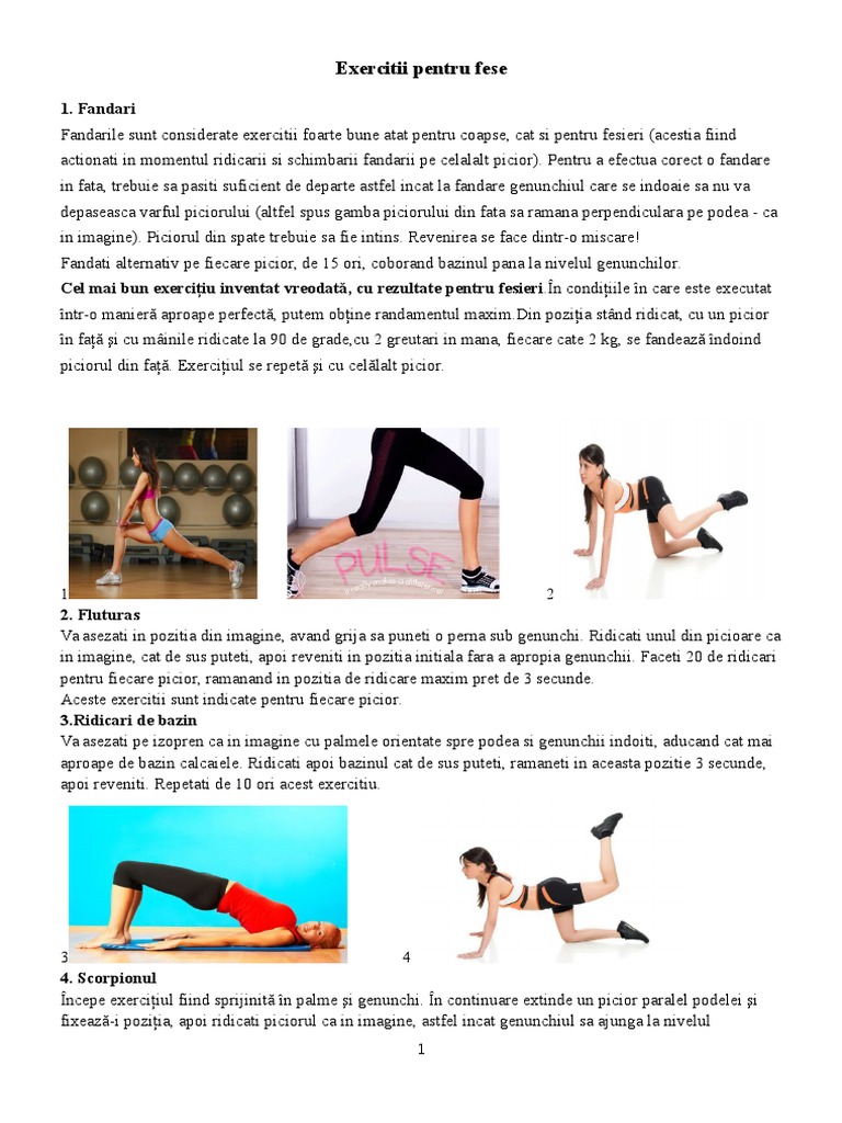 Repet micarea de 20 de ori. Exerciiul antreneaz muchii fesieri i muchii coapsei anterioare.