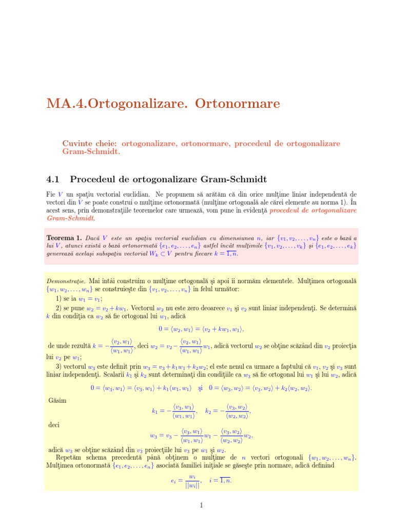 Cuvinte cheie: ortogonalizare, ortonormare, procedeul de ortogonalizare