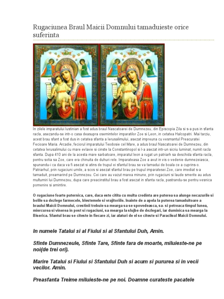 Rugaciunea Braul Maicii Domnului tamaduieste orice