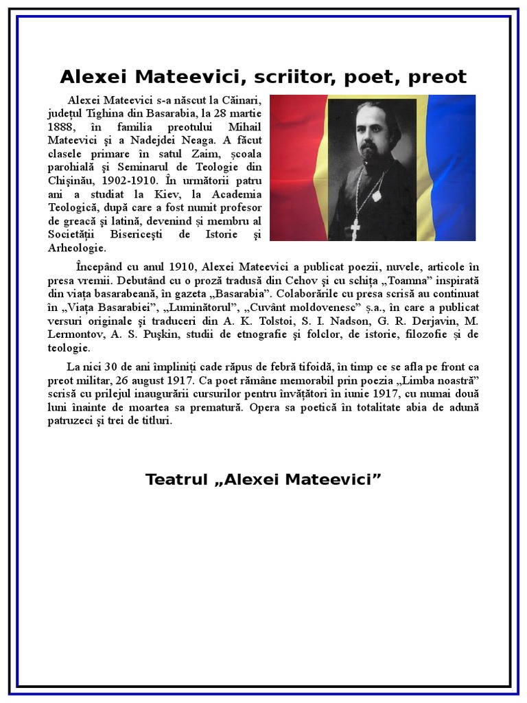 i naionale, iar Cenaclul Alexei Mateevici i-a