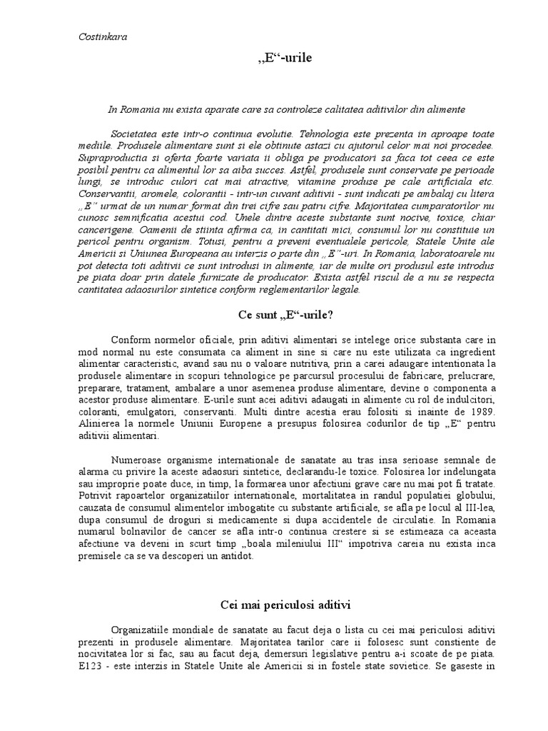 spune, insa, ca E-urile sunt un pericol total in alimentatie ar fi alarmist si neadevarat.